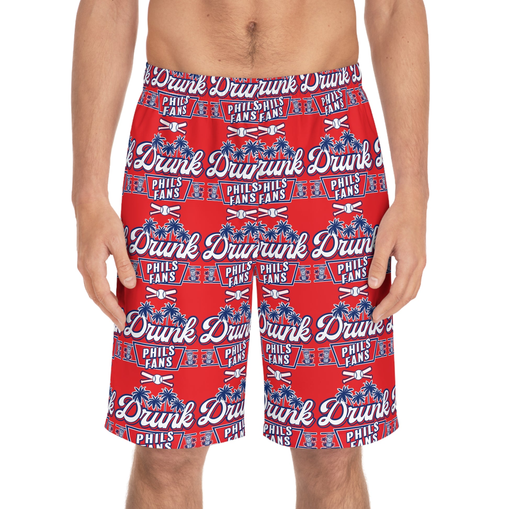 Add a personalized touch to your wardrobe with these custom board shorts for men. Made with light, breathable polyester fabric, these shorts feature 2 side pockets for daily convenience, an elastic waistband, and a black drawstring rope.